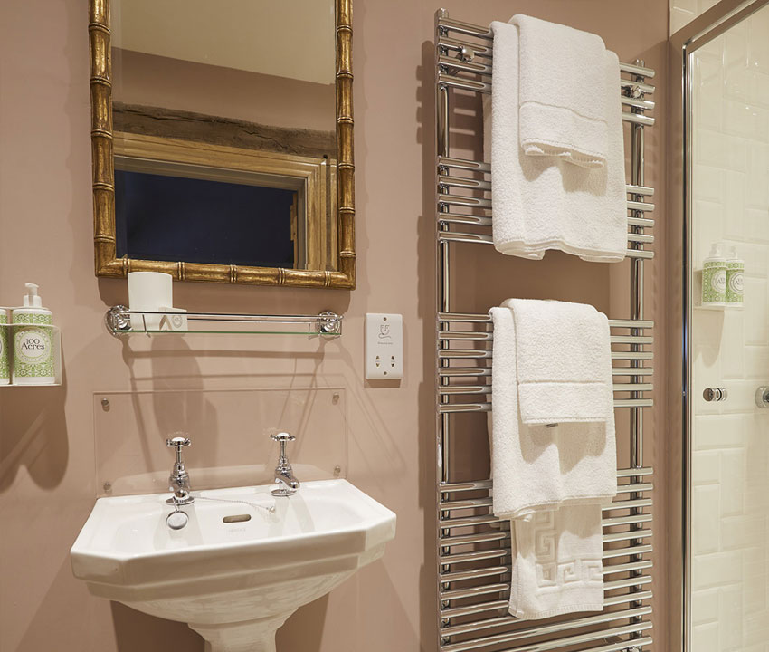 - En-suite bathroom with heated towel rail and overhead shower. 100 Acre Apothecary Products